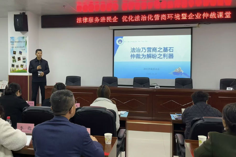 2025年11月5日,渭南仲裁委員會聯(lián)合臨渭區(qū)工商聯(lián)、臨渭區(qū)司法局共同舉辦“企業(yè)仲裁課堂”暨營商環(huán)境服務(wù)周活動。來自商貿(mào)、農(nóng)業(yè)、制造、物流等行業(yè)的20余家企業(yè)負責人參與。