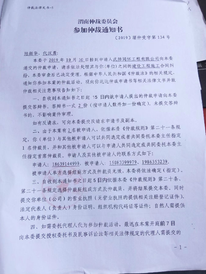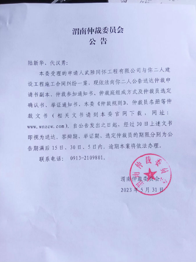 武陟同懷工程有限公司與陸新華、代漢勇一案公告
